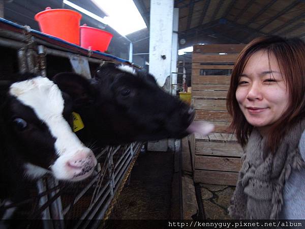 小牛不時伸舌要舔人