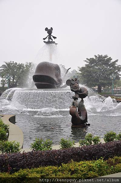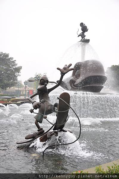 米奇被鯨魚噴泉噴到天空去