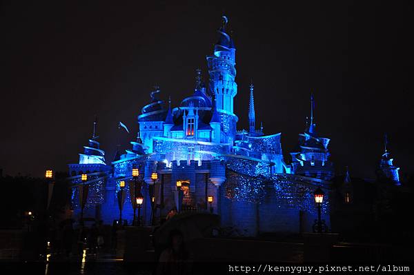 園區中央的城堡到了晚上會發光