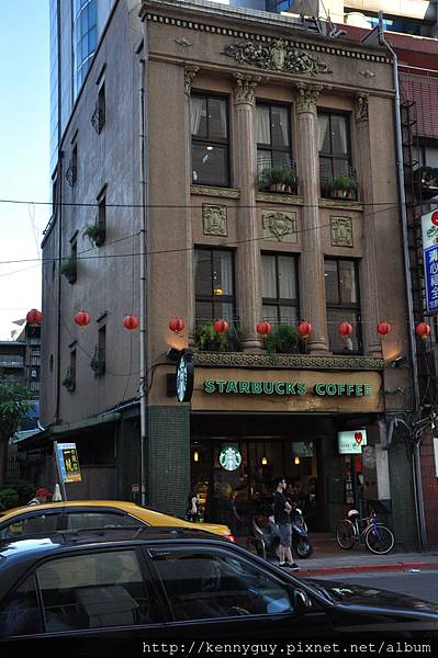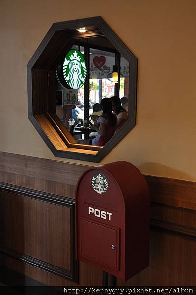 八角窗同時反映出星巴克的logo