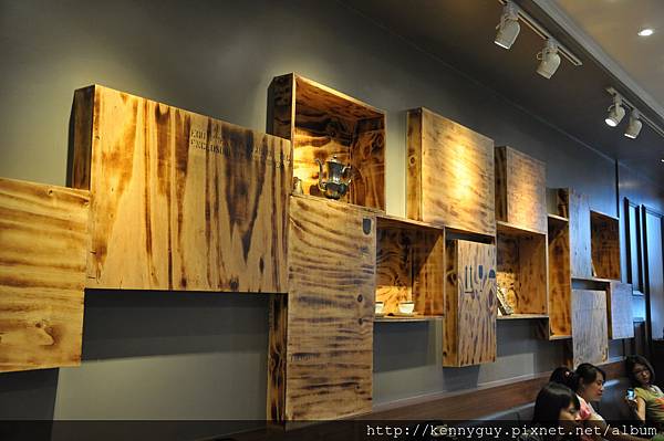 牆上還有木箱造景
