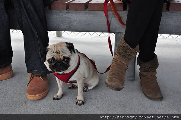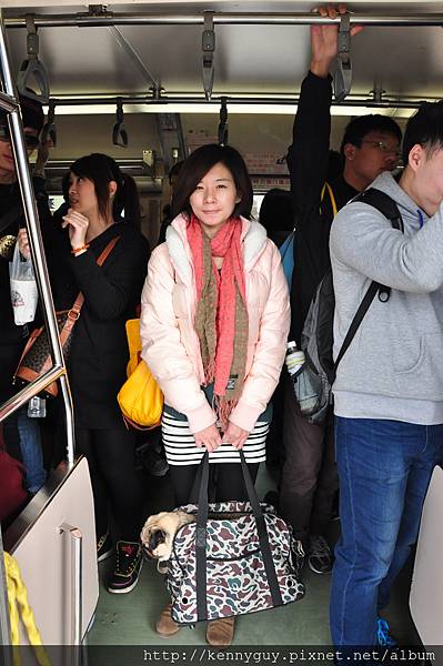 邦妮在火車上都乖乖在袋子裏 下車後讓她出來透透氣