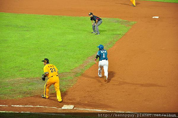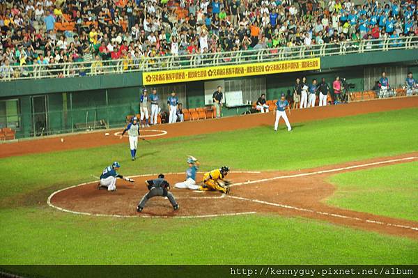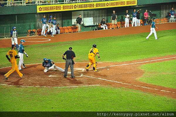 Safe! Lamigo得分! 捕手未確實接到球 余德龍趕快出腳踩壘