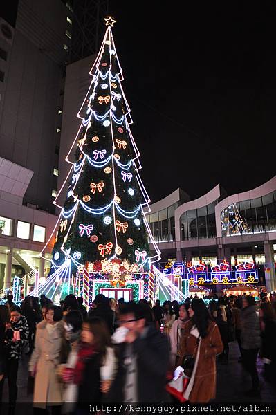 一樓中庭有很多人聚集聊天 周邊販售各式各樣聖誕節商品