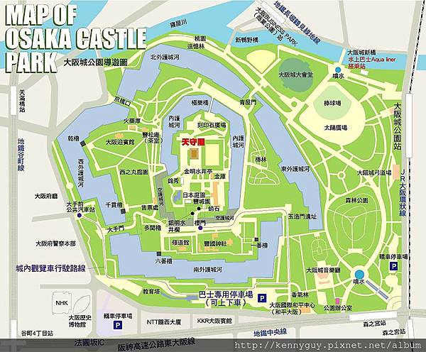 於難波搭地鐵至本町站再轉搭至森之宮站即可抵達大阪城外圍