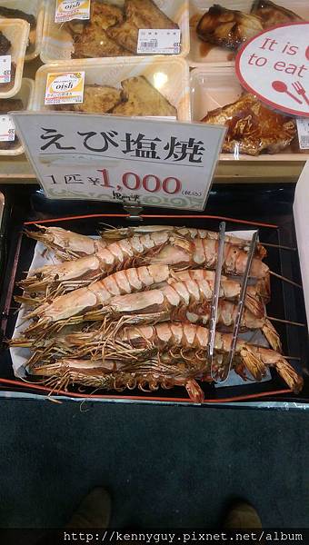 一轉進黑門市場 頭上的魚就是大扛棒(招牌)