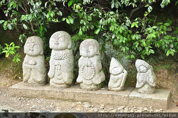 路邊有幾座石雕像 覺得有點可愛又有點可怕