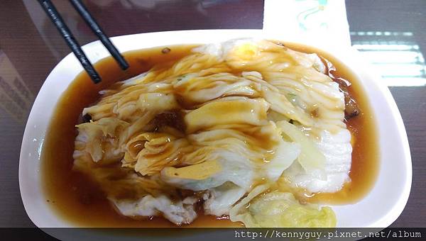 口感有點類似腸粉 但較為軟嫩 加點辣更好吃!