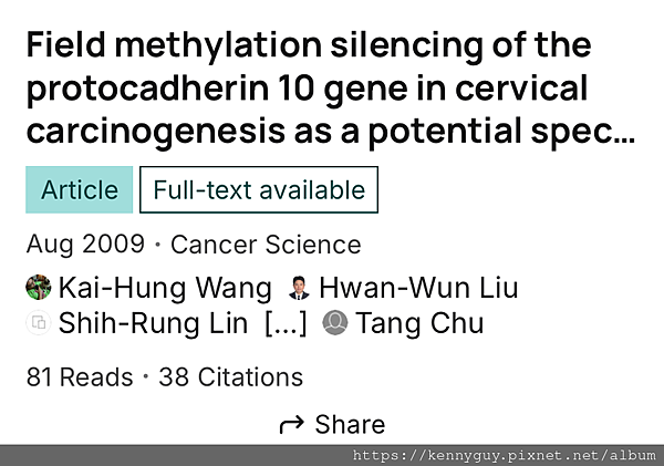 前4篇是做子宮頸癌的研究,第5篇就隨著實驗室轉型到卵巢癌了。